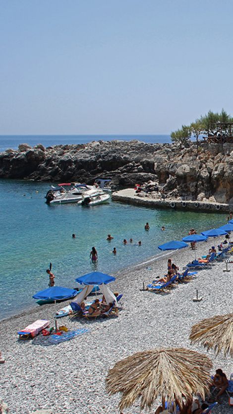 Sougia is a small seaside village on the south coast of western Crete, in the prefecture of Chania, 60 km from the city of Chania. Swim in the clear blue waters of the Libyan sea. Get your tan under the burning sky of southern Crete, a friendly atmosphere, a carefree and relaxing holiday. You can also hike on beautiful trails.